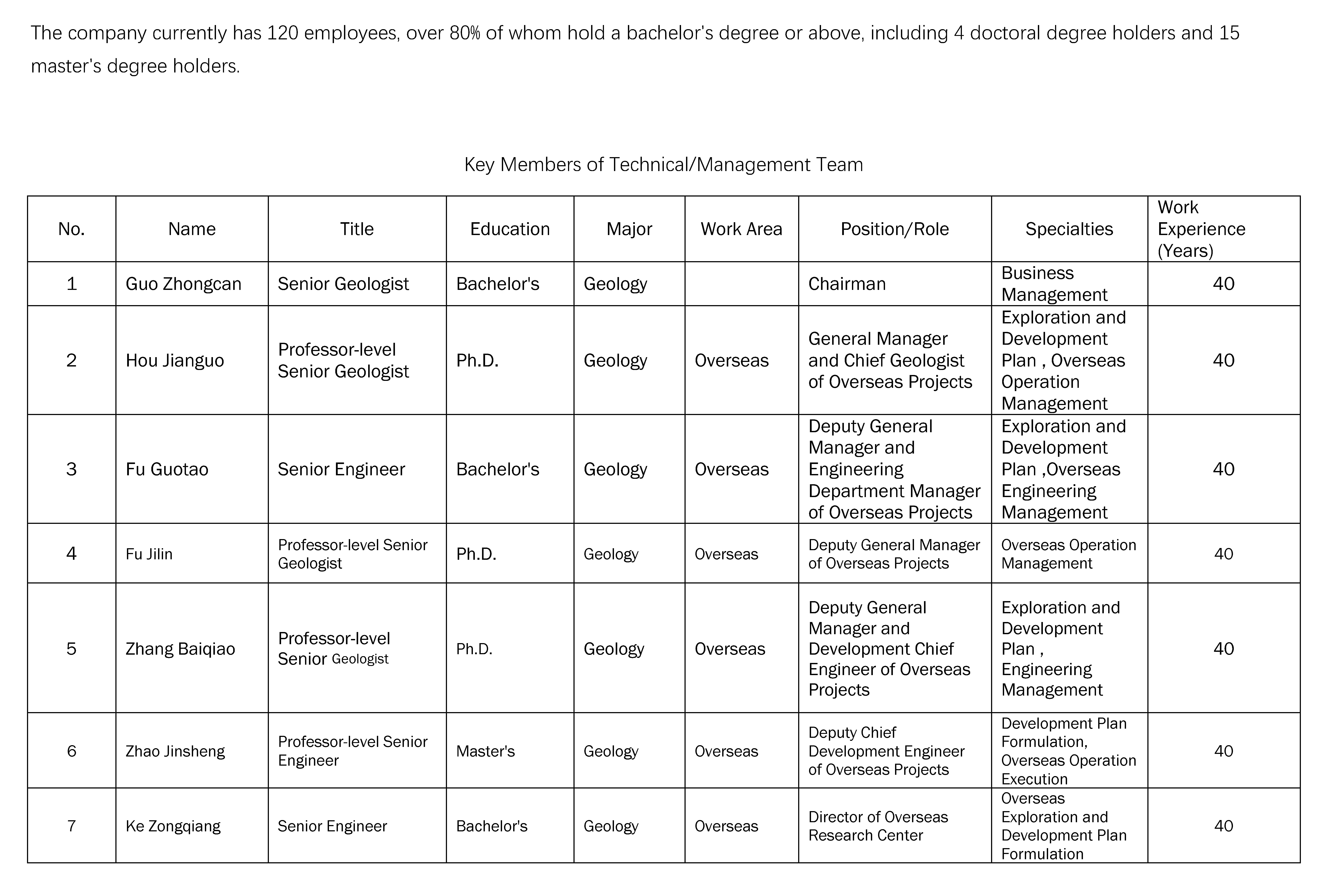 The company currently has 120 employees, over 80% of whom hold a bachelor's degr...