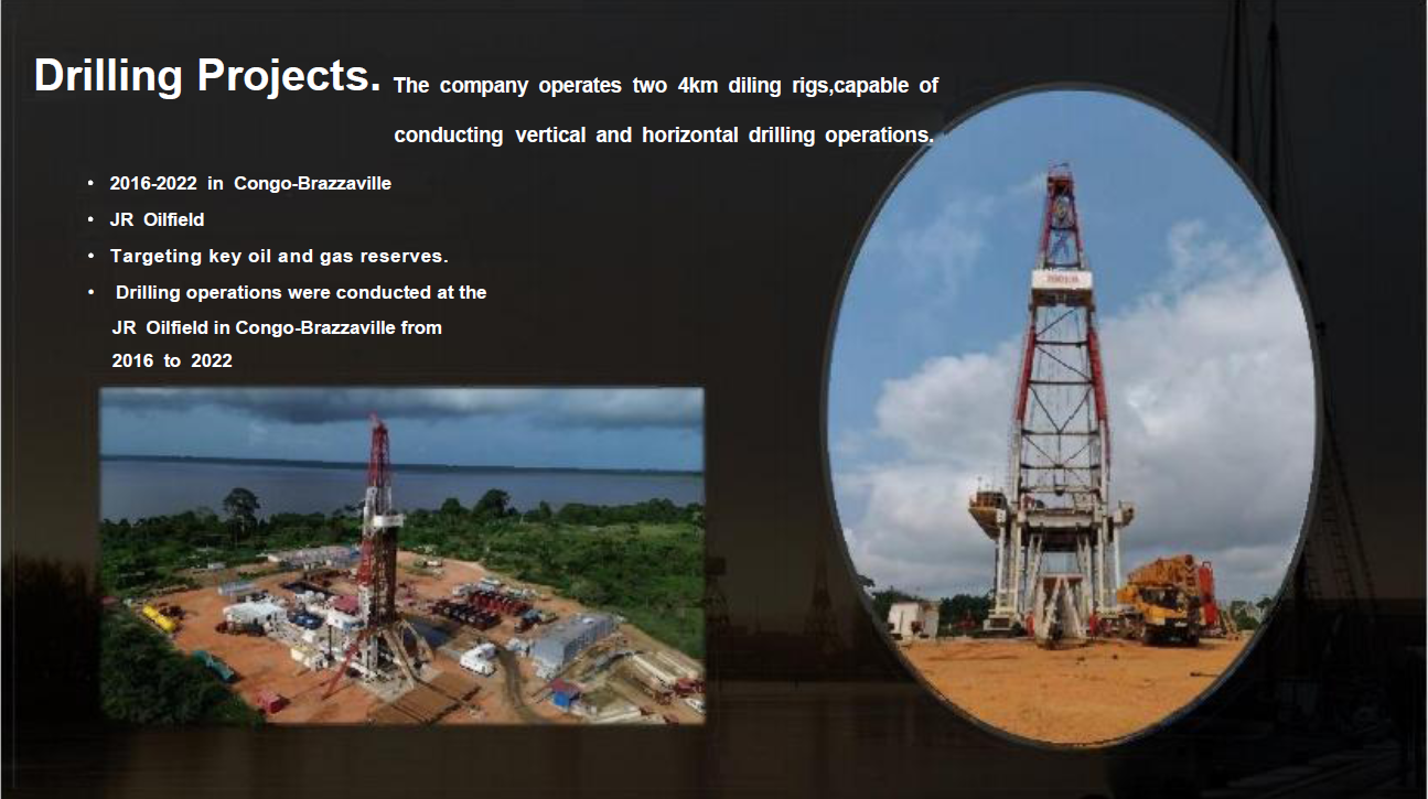 2021年-2022年,锐浪石油有1部钻井参与了中国鄂尔多斯盆地低孔低渗油气田开发井钻探; 2016年-2022年,组织2部4000米钻机和压裂设备参与了刚果布JR油田低渗透油田的勘探、开发。